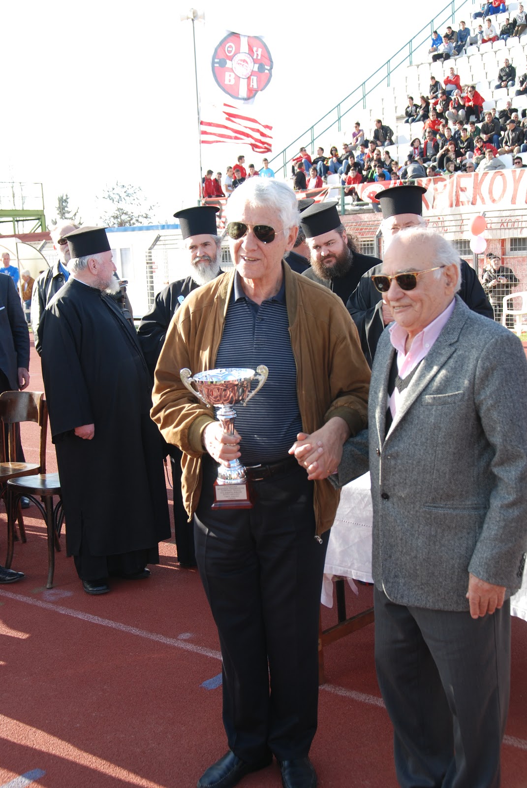 Παρουσία 500 και πλέον φιλάθλων μέσα σε πανηγυρικό κλίμα πραγματοποιήθηκε με μεγάλη επιτυχία ο Φιλανθρωπικός Ποδοσφαιρικός Αγώνας των Παλαιμάχων του ΑΟ Η ΘΗΒΑ και του ΟΛΥΜΠΙΑΚΟΥ ΠΕΙΡΑΙΩΣ στο Δημοτικό Στάδιο Θήβας με σκοπό την οικονομική ενίσχυση των Ιδρυμάτων της Ιεράς Μητροπόλεως Θηβών και Λεβαδείας ( Αρωγή , Τράπεζα Αγάπης Θηβών , Γηροκομεία κ.λ.π. ) .