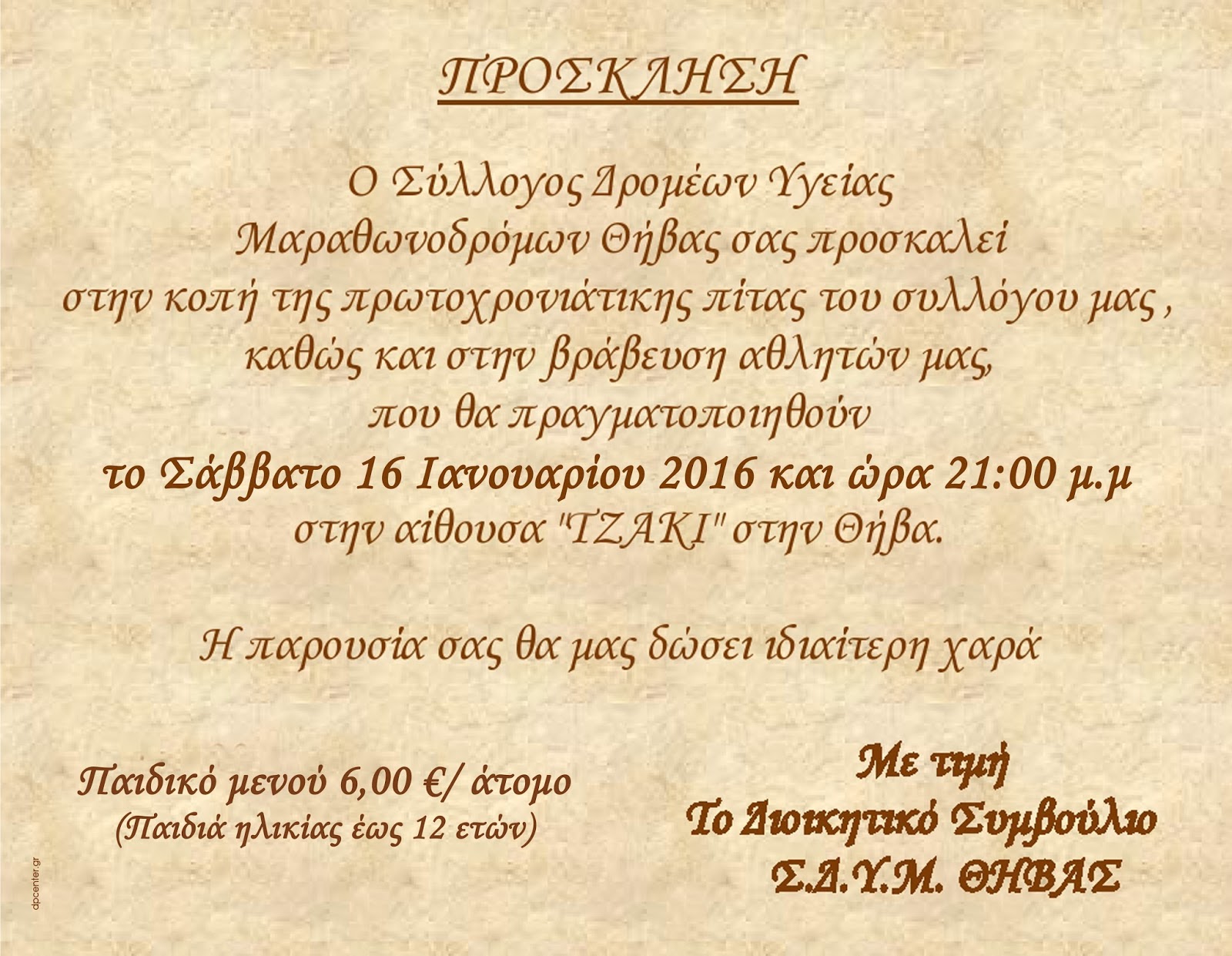 16/1/2016,στις 21μ.μ θα πραγματοποιηθεί ο ετήσιος χορός του Σ.Δ.Υ.Μ